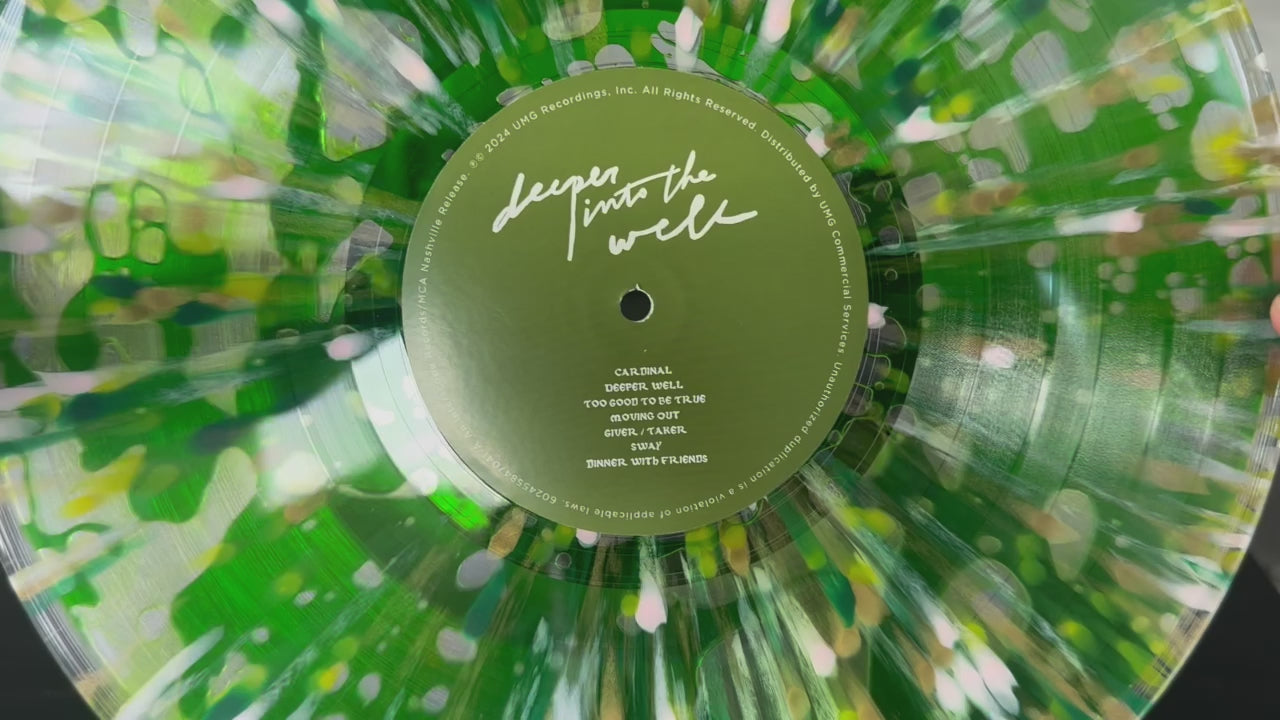 ‘Deeper Into The Well’, the expanded edition of Kacey Musgraves sixth studio album, comes exclusively pressed to four colour splatter LP with green liquid, complete with second olive green bonus disc - Combining Deeper Well and Deeper Into The Well for the first time on a physical format. With rolling acoustic guitars, puffy clouds of strings and synth, warm bass punctuations, layered harmonies, moments of Celtic melodies, Kacey surveys her life and priorities, recognising what feeds her, drains her and even examines the childhood she’s left behind on her way to now. Saturn returns, cardinals embody a dead friend, love is given and taken, streets rush by, belongings are packed and old chapters deserted, new love blooms, jade bracelets serve as talismans, deep lessons emerge, small details define everything, the woods are a refuge and New York City serves as the same gleaming beacon as Oz