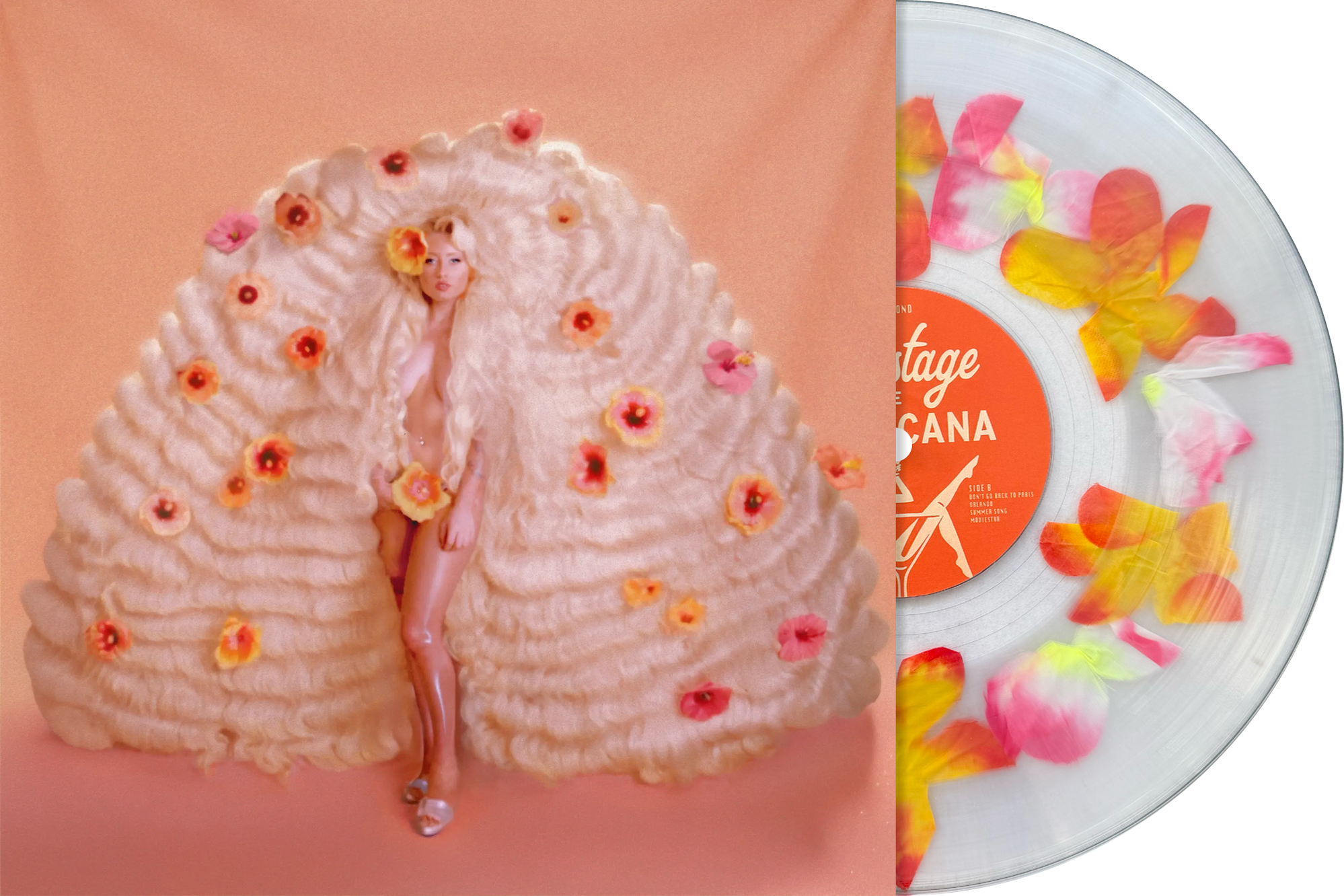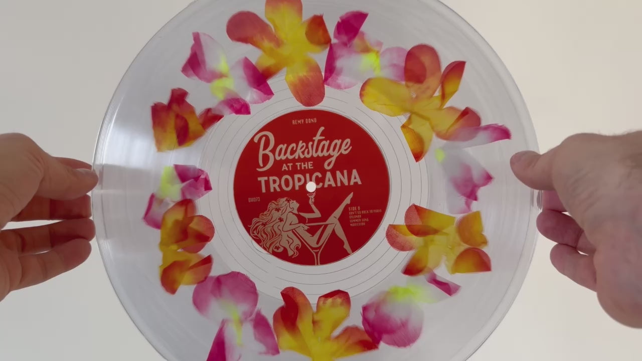Singer, songwriter, and creative visionary, Remy Bond’s 2025 album Backstage At The Tropicana comes exclusively pressed to flower lei filled LP with exclusively sparkle-board printed inner sleeve via Bad World. Remy set the tone for this project as a Hawaiian vacation, all while glamorizing her nostalgia for the 50s, 60, 70s, and 80s. About Backstage At The Tropicana, Remy shared, “When piecing this project together, I wanted it to feel like a good bunch of songs that reflects on everything I’ve released so far while adding songs that set the tone of this new era. I've always felt nostalgia was the strongest emotion. I had a magical childhood, and I think I glamorize that nostalgia in the same way I think of the 50s, 60s, 70s, and 80s. Though the past slowly fades, I try to write each song like a reminder of those disappearing worlds. One song might take you to a 50s diner, another on a Hawaiian honeymoon.”